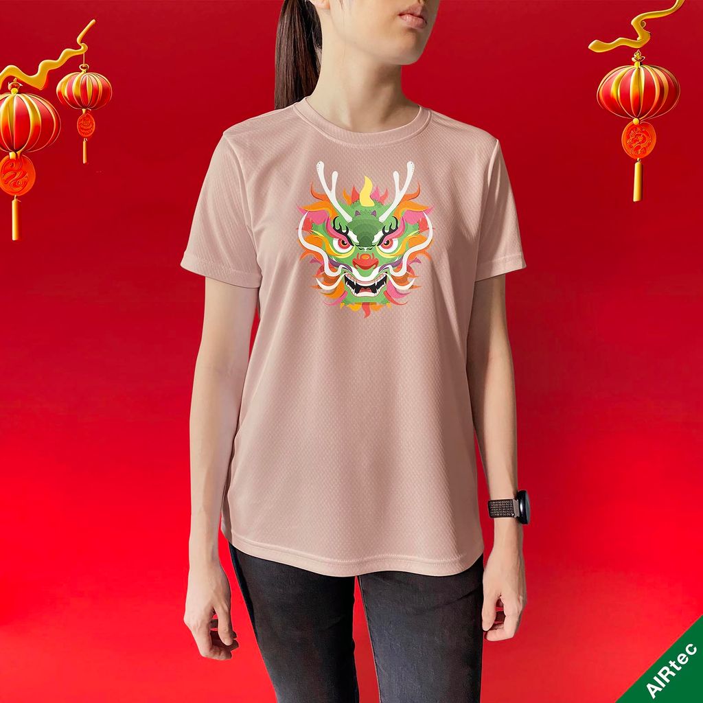 Dragon CNY Tee, wear as Family. AIRtec Microfiber. Colour: Pale Peach / Ice Mint (XS - 2XL).